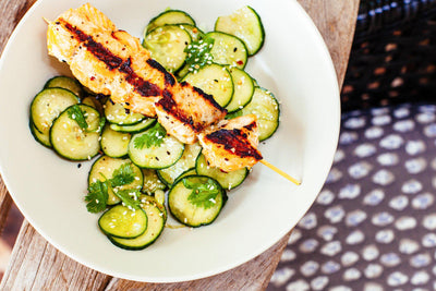 Grilled Asian Salmon Kebabs with Cucumber Salad on the HERO Grill
